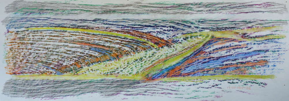 - Bleistift/Farbstift/Wachskreide auf TonKarton - 25 x 70 cm - 300 Euro