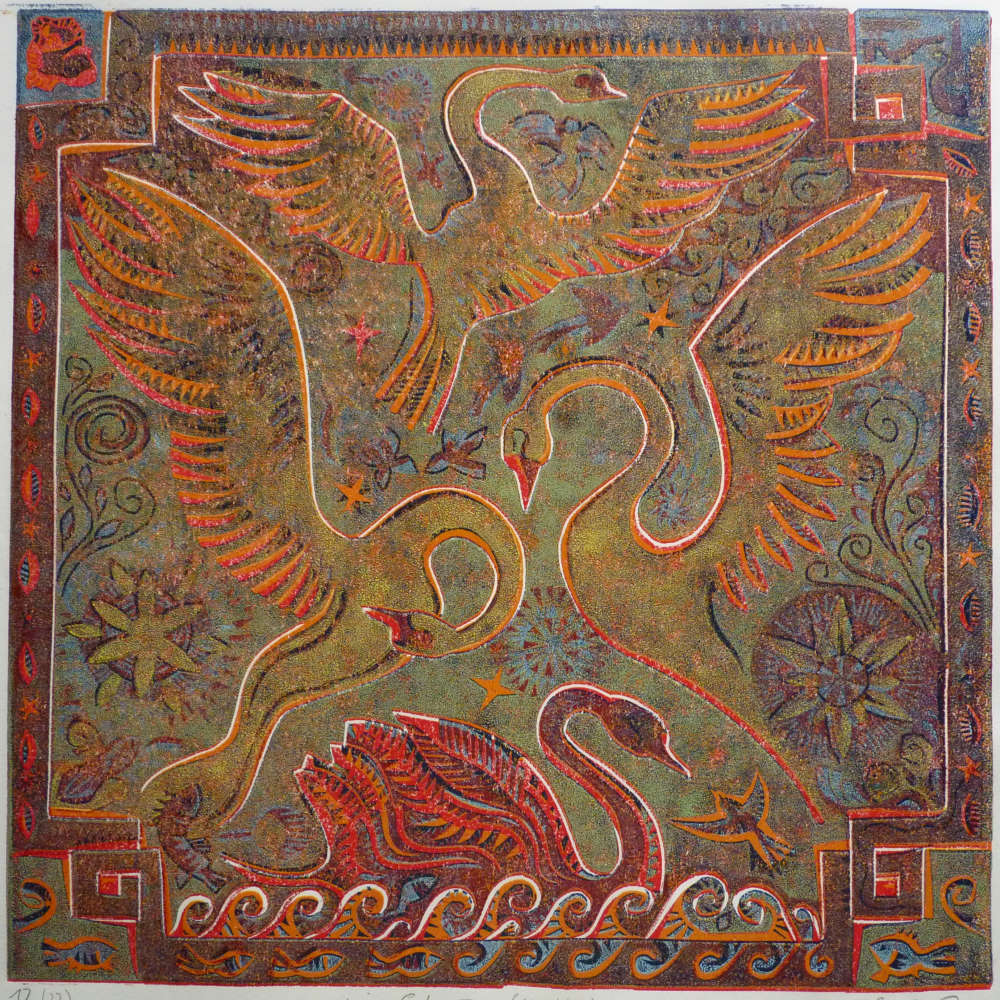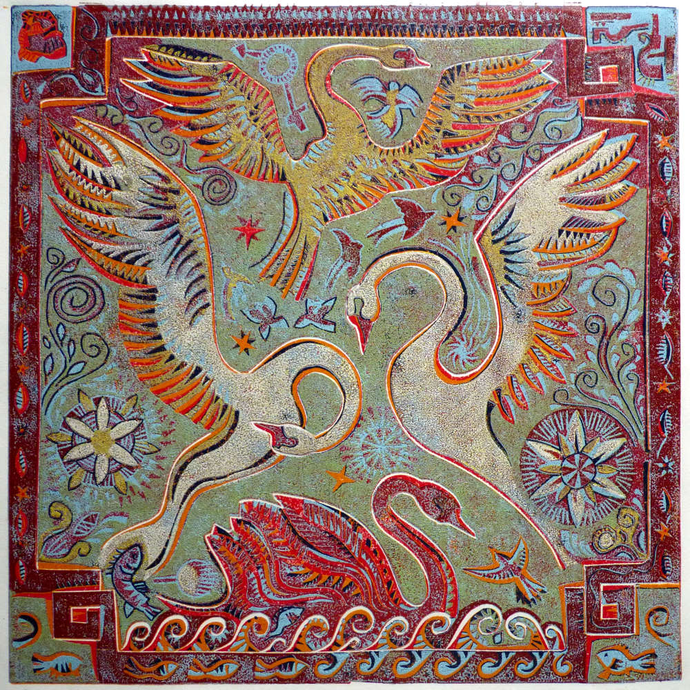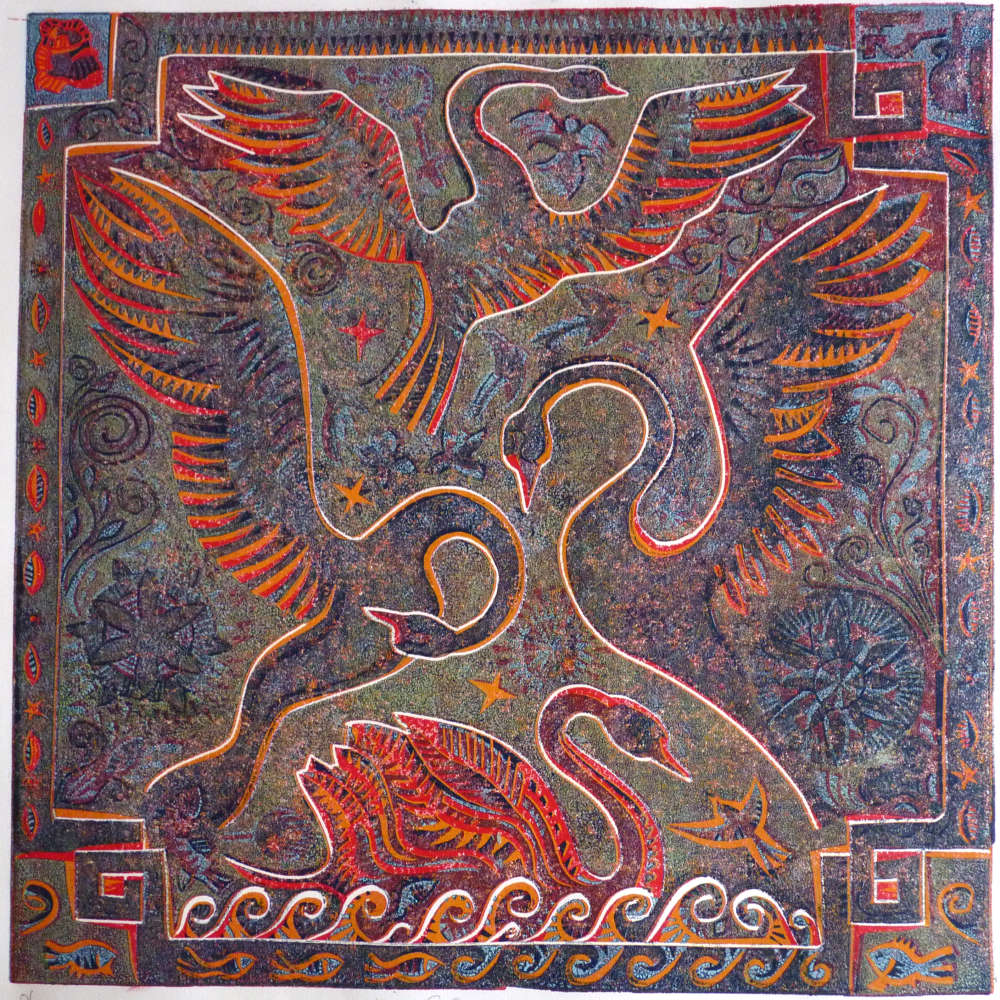 Ein mehrfarbiger Linoldruck - aus der verlorenen Form geschnitten ... So entsteht es ... |