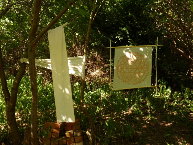 Im August ergänzte ich den Altar mit der "Blume des Lebens", einem Symbol für die Urkraft der Schöpfung, die in allem wirkt, dem Kreuz entgegen oder an die Seite.