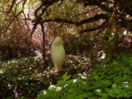 „Hast Du Lust, meinen Garten zu gestalten?“ fragte mich Christopher Haley Simpson. „Ja!“, auch wenn ich in der Form noch nie gearbeitet hatte. Der Garten ist ein wildes Stück Land, von der Natur zurückerobert, da sich jahrelang niemand kümmerte. Und hier entdeckte ich wundervolle Räume, die mich sofort inspirierten. Zwei alte Apfelbäume bildeten fabelhafte Formen. Brombeeren, Robinien, Mispeln, wilde Rosen und umgefallene Bäume bildeten geheimnisvolle Laubhöhlen, in denen Naturgeister hausen.