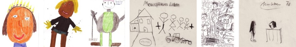 Die Jungen verlieren sich auf ihrem Bildungsweg ... Auf dem Weg von der Grundschule bis zum Gymnasium verändern sich die Bilder, die sie von sich haben: Aus Figuren, an denen alles dran ist, entstehen Strichmännchen, die in einem großen System von Anforderungen verschwinden: mein Job, meine Familie, mein Auto. Im Gegensatz dazu stehen Bilder, die sie in den workshops "heimlich" gemalt haben, diese drücken aus, dass in ihnen noch kleinen Jungen leben.