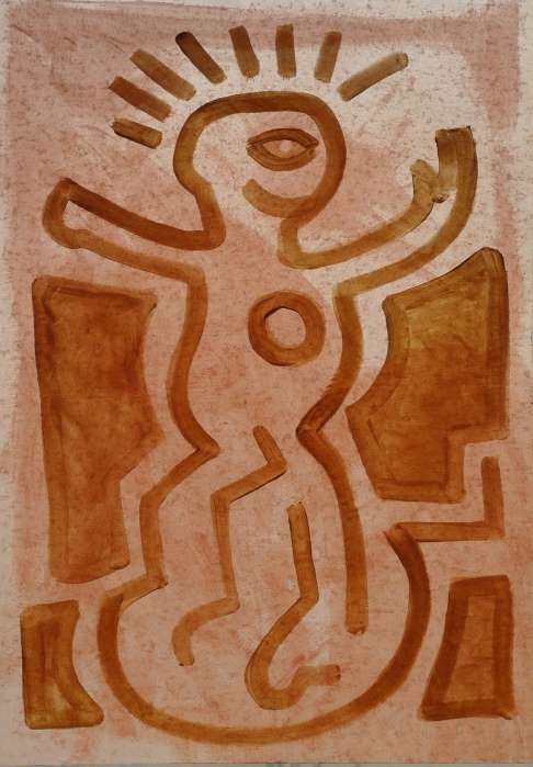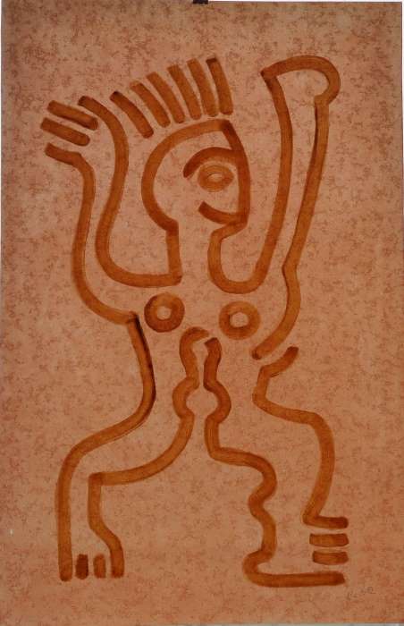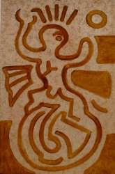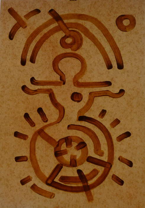 alle Arbeiten wurden mit Erdpigmenten in Kaseinbinder auf einem besonderen, selbst hergestellten halbtransparenten Papier ausgeführt. die Abbildungen sind durchleuchtet.