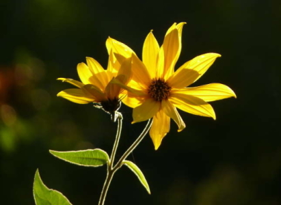 Dort stand eine Blume, groß und schön, mit leuchtenden Blüten, die wie kleine Sonnen aussahen, kräftigem Stängel und dunklen Blättern.