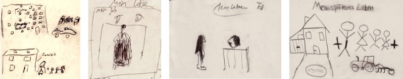 Denn sie werden die Wirtschaft führen, sie werden in die Politik gehen und Entscheidungen treffen. Sie werden 30 Jahre jung sein, viel Geld haben und allein sein, oder ein Haus haben, eine Familie ihr eigen nennen, ein Auto besitzen, einen Job ausfüllen und irgendwie spüren, dass etwas fehlt: Ihre Kinderseele sitzt noch im Sandkasten und will spielen. (die Bilder stammen von 12 jährigen Jungen eines Gymnasiums zum Thema "Meine Zukunft als Mann")