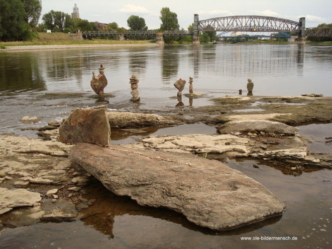 magdeburg, domfelsen - blick zur hub- und sternbrücke